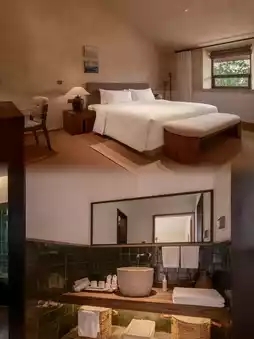 The rooms embody a "less is more" design philosophy, featuring wood-toned furniture paired with linen-textured soft furnishings. Bathrooms showcase natural stone, while minibars offer locally sourced teas. The bedding deserves special mention - high-thread-count cotton fabrics paired with ergonomic mattresses.
