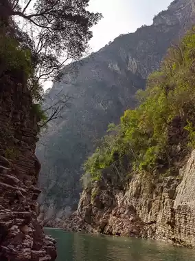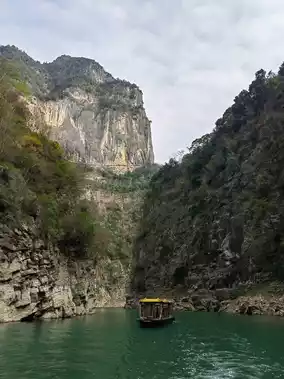 Shennv Creek flows into the Yangtze River at Qingshi Town, opposite the foot of Shennv Peak. Due to its rugged geographical environment, the lower reaches of the river still retain their relatively primitive natural features. Shennv Creek, also known as "Beauty Creek" by locals, is 15 kilometers long. Due to the rapid flow of water and the narrow and shallow stream path, 10 kilometers of it is a pristine valley with few people. Only after the Three Gorges Dam is filled with water can tourists see its beautiful face. Take a boat into the winding river, surrounded by green mountains and the river twists and turns, which gives you the artistic conception of "after being so steep and deep that you think there is no way out, suddenly you see another village with willows and flowers". Halfway through the journey, the sun suddenly came out, shining on the mountain wall, sweeping away the coldness when we entered the canyon. The sun rises over the golden mountains, the sky is blue and the water is clear, it is another scene! The only regret is that the commentator talked too much along the way! But I also understand that this is part of tourism! The picturesque landscape touches my heart, let’s ignore everything else for now!