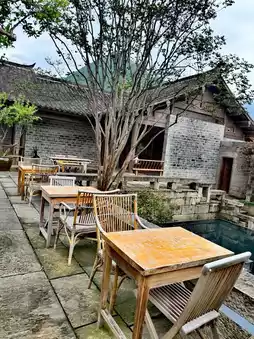 🏠Architecture and environment: Traditional courtyard-style folk house style, with black tiles and wooden eaves, and bluestone brick walls. The courtyard has winding paths and green grass. At night, cicadas and insects sing, which is very poetic.