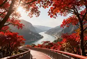 The biggest surprise was the scenic loop trail at the Heart of the Three Gorges. The entire 1,300-meter path was wrapped in red-leaf trees. When the wind blew, leaves floated down, landing on shoulders with a fragrance. Standing at the highest point, the bend of the Yangtze River was perfectly framed in view, and the distant Shennü Peak appeared faintly, truly matching the poem line "The boat’s bow is full of colorful green in the autumn sky." Sunlight filtered through the branches and leaves, sparkling on the river like scattered gold.