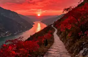 At dusk, I rushed to the Three Gorges Dragon Spine to watch the sunset. The red leaves beside the trail dyed the sky a warm orange. When it got dark, the "Light of the Three Gorges" on the river lit up, and the 3D projection on the cliff made the shadow of the goddess move. The lights reflected on the river surface, turning even the ripples into colors.