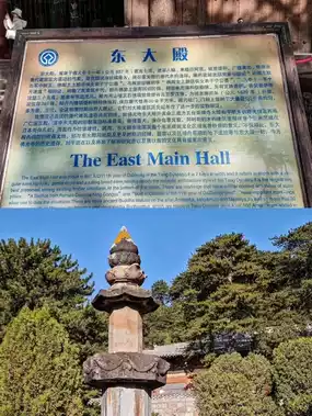 East Hall: Built in the Tang Dynasty, it is the best among the existing wooden structures in the country. The Tang Dynasty architecture, sculptures, murals and inscriptions here are known as the "Four Wonders".
