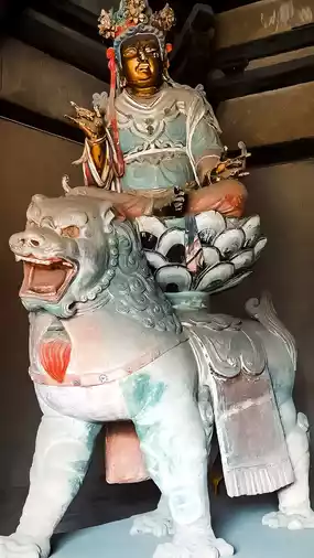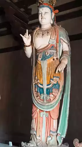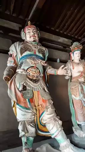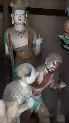 There are statues of Liao Man and Fulim leading lions and elephants and two boys looking up. This group of statues is vivid and lifelike, leaving a deep impression. There are 14 colored sculptures, originally 17, and the 3 stolen ones have not been found yet. What is even more infuriating is that the main target of the thieves was the hidden objects, so they also rudely dug open the chest of the Buddha statue and stole the cultural relics inside the Buddha statue. They are also missing. Although it is slim, I still hope that one day these stolen national treasures can return to Nanchan Temple and let the 17 colored sculptures gather together again.