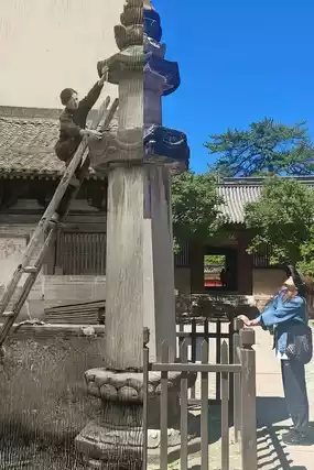 Liang Sicheng praised it as China's number one national treasure, and Lin Huiyin wept with joy when she saw it. To disprove Japanese scholars' claims that no Tang Dynasty buildings remained in China, Liang Sicheng and Lin Huiyin, guided by the inscription "Great Foguang Temple" and its location depicted in a mural in Cave 61 of the Dunhuang Mogao Grottoes, embarked on their fourth antiquarian expedition to Shanxi. After a long and arduous search, they finally reached this ancient temple hidden deep in the mountains. Following several days of surveying and investigation, they confirmed that the main hall was built in 857 AD, the eleventh year of the Dazhong era of the Tang Dynasty, thus refuting the claim that no Tang Dynasty buildings existed in China.