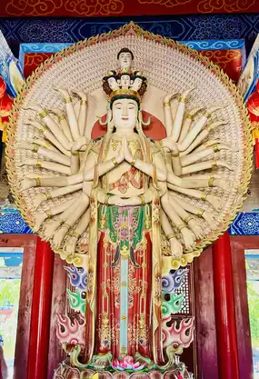 Inside the mountain gate, there is a white marble Thousand-Hand Guanyin statue, which is very exquisitely made.