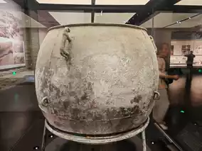 Bronze 鑑 (fù): Experts infer that this bronze 鑑 is used by the Hun princes and nobles who nomadically lived in the Wuwei area from the end of the Warring States Period to the beginning of the Western Han Dynasty. Judging from the traces of smoke on the utensils and the fat-like dirt on the inner wall, it may be a cooking utensil for cooking beef and sheep😃.