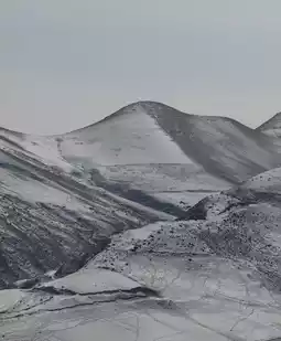 The opposite Dahu Lake is covered with snow, neat and tidy, with a clear boundary with the distant mountains, curing my OCD.