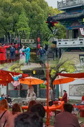 The signature show in the Three Kingdoms City recreates the scene in Romance of the Three Kingdoms where Liu Bei, Guan Yu and Zhang Fei fought against Lu Bu. The superb horsemanship and fierce fighting are so shocking that you feel like you are on the battlefield.