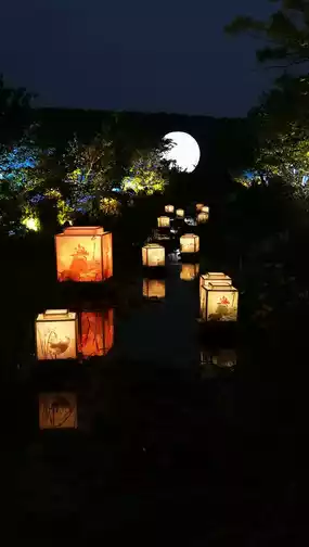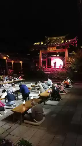 During the day, you can stroll through the Tang-style Xiangyue Flower Street, visit craft shops, and take a break to eat and drink, enjoy the beautiful scenery, taste delicious food, and savor the slow-paced time. You can also visit buildings such as the Zen Music Hall, Hundred Flowers Hall, Miaoyin Stage, Nianhua Hall, and Nianhua Tower.