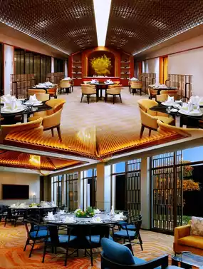 As dusk falls and lanterns light up, the aroma of delicacies fills the Dining Chrysanthemum Pavilion. Gazing out the window, the hotel's nightscape unfolds like an ink painting. Each meticulously prepared dish is a work of art, playing a symphony of flavors on the palate, every bite brimming with the gentleness and depth of Jiangnan's water towns. Remember to book a window seat in advance to enjoy the view while dining.