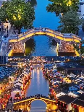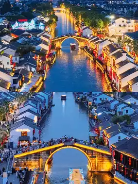 Qingming Bridge lights bloom horizontally, the ancient canal reflects the moonlight vertically.