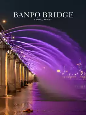 The fountain ripples create a magical spark when colliding with the ancient-style architecture