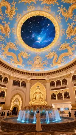 The dome sparkles with stars, murals painted by hundreds of intangible cultural heritage artisans;