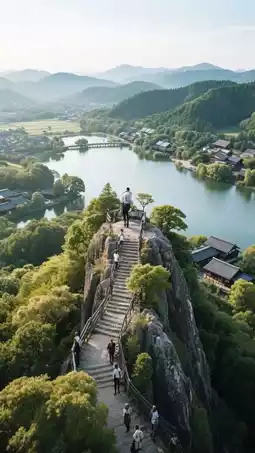 From the top, you can overlook the entire Nianhuawan, with lake and mountain scenery in full view.