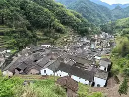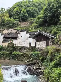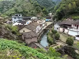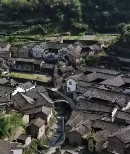 The village's architecture is built against the mountain and is surrounded by mountains on all sides. The vegetation around the village is lush, and the mountain trees are verdant. A babbling stream flows through the village, and dozens of ancient dwellings are built along the narrow valley on both sides of the stream. From a distance, the horse-head walls and the hard mountain roofs undulate with the terrain, creating an orderly and picturesque scene, making the whole village seem like an ink wash painting of a mountain dwelling.