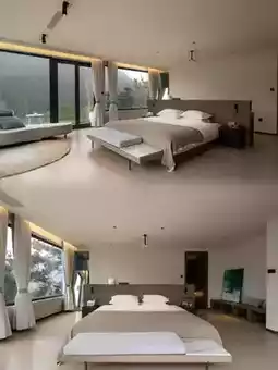 The guest rooms start at 48 square meters, very spacious. The interior design is not overly complex, with simple and elegant light tones paired with dark wooden furniture. The rooms also feature large floor-to-ceiling windows, bringing natural light indoors. The beds are super large and soft, and the fabric sofas are very comfortable, providing a great accommodation experience.