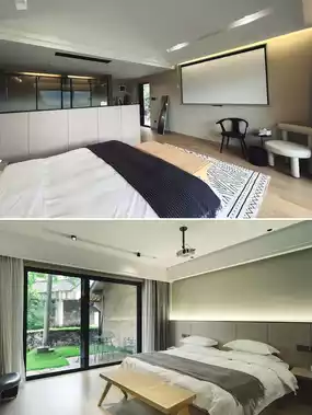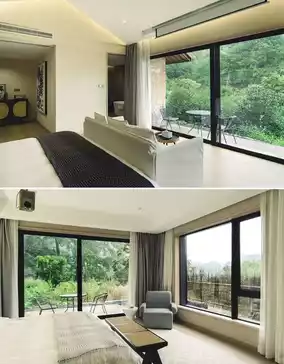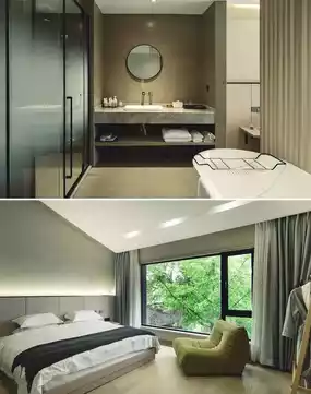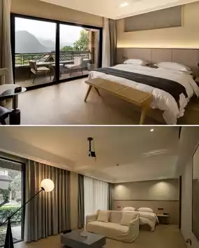With 50 rooms, the courtyard king rooms offer bamboo grove breezes at the window, while loft-style rooms are perfect for late-night chats by the fireplace. Private villas cater to family gatherings. Inside, Kohler fixtures, smart toilets, five-star bedding, and laser projection screens elevate comfort. Expansive viewing terraces serve as personal "sky canvases"—sunrise at dawn, tea at dusk, and mountain winds brushing past, delivering undeniable serenity.