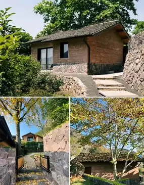 Built on the foundation of an ancient village, the homestay features walls of rammed earth and stone, topped with black tiles, preserving the raw textures of She ethnic eaves and beams. Moss-clad stone walls whisper tales of time. Scattered across the hillside are standalone courtyards, each with its own charm: cliffside villas overlook seas of clouds, quadrangle houses embrace courtyard water features, and lawn canopies mirror the starry sky above the infinity pool. As night falls, twinkling lights amplify the romance.