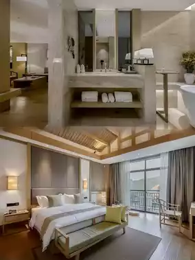 "Pinshanlou" Restaurant: Exclusively for hotel guests, featuring mountain delicacies and tea-infused dishes, offering authentic northern Fujian flavors. Antique-style tea house: Enjoy tea and discuss tea culture, while listening to the mountain springs. Half-slope tea pavilion: Enjoy the cool breeze, read a book, or daydream. Kongjing Mountain Room: Professional tea masters brew and discuss tea, with a 180-degree glass tea room offering beautiful views, providing a comfortable and pleasant experience.