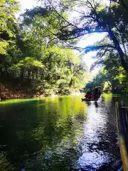 Morning: Head to Jiuqu Stream and take a bamboo raft to enjoy the beautiful scenery of the nine bends and eighteen turns along the way, and feel the magic of nature.