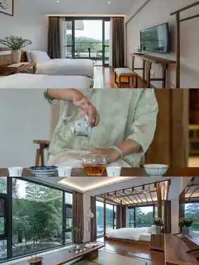 Surrounded by lush tea gardens, the manor is filled with the aroma of tea, nestled between mountains and rivers in a serene and elegant environment. Both inside and out, the manor features a refined Chinese architectural style.