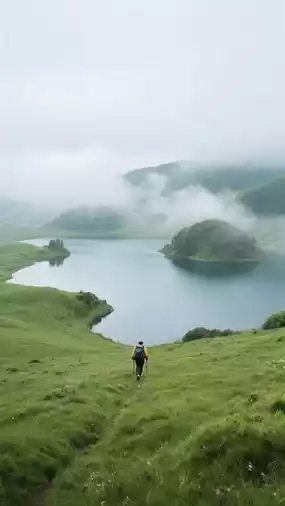 ✅ Hike on the island through ten thousand acres of meadows + large and small Heavenly Lakes, shrouded in mist like crossing a plateau