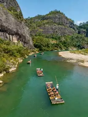 Highlights: Ride a bamboo raft downstream to enjoy the picturesque views of Yunu Peak, Shai Bu Rock, and other unique peaks on both sides.