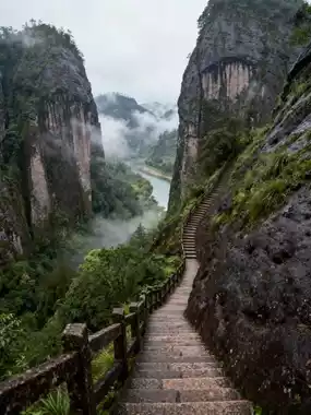 Highlights: Known as the "Number One Peak of Wuyi," you can overlook the entire Nine-Bend Stream from the summit. The scenery is magnificent, and elderly or children with good stamina can try climbing slowly.