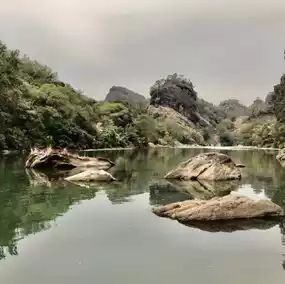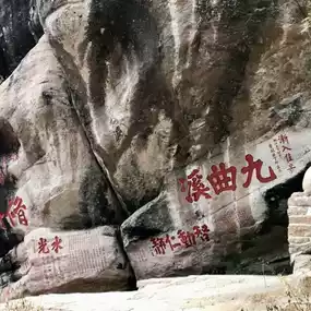 located along the Nine Bend Stream, it has beautiful inscriptions on the rocks facing the stream. It is near the Zhi Zhi An Temple, an old temple not to miss.