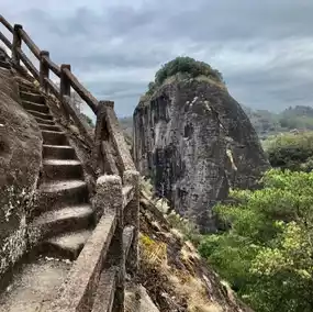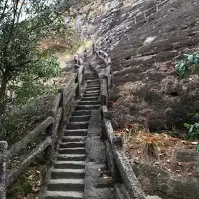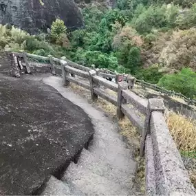 it is a narrow trail with steep steps that takes you to Tiger Roaring Rock (Huxiaoyan 虎啸岩) to the top of the mountain, from where you can see a magnificent panorama of the lush mountains. They said is a magical place in Wuyi Mountain because you can hear the wind roaring like a tiger while it is going through the cave on the rock.