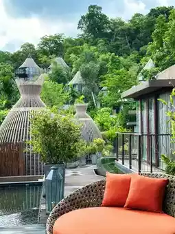 along the banks of the river, almost at the top of the mountains you can see the hanging boat coffins.