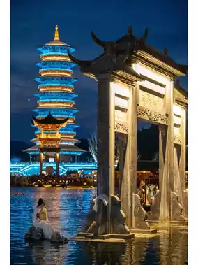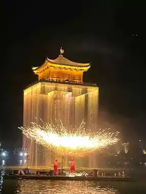 There are many eye-catching attractions in the Wunuzhou Scenic Area. The most eye-catching one is the "Hanging Golden Pavilion" in the center of Wuxian Caishen Lake, which is like a golden palace in the sky, suspended in the air. Under the lights and fireworks at night, it is even more dazzling and jaw-dropping!