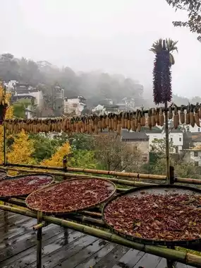 #HuanglingSunDryAutumn is the most distinctive cultural landscape in the area. During the autumn harvest season, farmers will put harvested crops such as persimmons, red peppers, and pumpkins on their roofs or use bamboo poles from windowsills to dry. When every household does this, it is quite spectacular, and the bright colors make the village look like it is wearing new clothes, which is super beautiful.