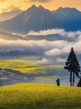 ✨ Spring (March–April): The elegant ink painting is tinged with yellow, and the countryside is filled with chrysanthemums.