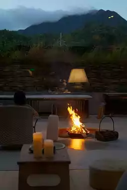 ✔️The sunken fireplace area is full of firewood, and the roasted oranges and sweet potatoes smell so good...