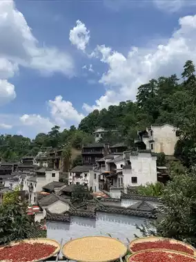 Morning: After arriving in Wuyuan, head straight to Huangling and take the cable car 🚠 up the mountain. As soon as you arrive, you can see the scattered Hui-style buildings in the ancient village. The white walls and black tiles are particularly eye-catching in the sun.