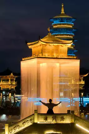 ▫️Golden Pavilion Fireworks: Every Friday and Saturday at 9:35PM, an aerial golden pavilion and brilliant fireworks paint a magnificent scene, as if you're in the never-sleeping city of the Tang Dynasty