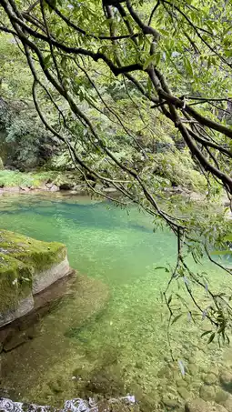 It's truly breathtaking! I heard summer is the high-water season, but there hadn't been much rain during the heatwave before my visit. I was super worried, but the lack of rain actually made the streams crystal clear! Every shot I took was wallpaper-worthy... perfectly making up for missing the Seven Small Arches in Guizhou.
