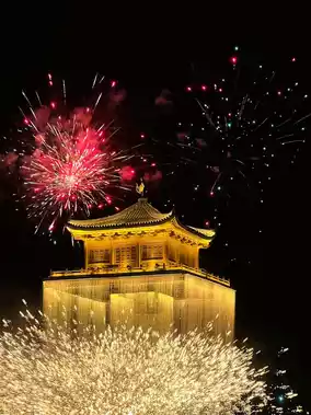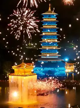 4️⃣ Best photo spots: Fireworks at Golden Pavilion look best from Changshuo Bridge, Baoyu Tower light show from the opposite square