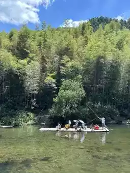 Filming location of the movie "I Am Not Pan Jinlian." The big camphor tree at the village entrance is a popular photo spot. You can ride a bamboo raft under the tree for 30 yuan per person, buy tickets on-site, and go immediately. Another must-visit spot in the village is the guesthouse where we stayed the night before, Mingxun Bieyuan · Yunshuiyao. I’ll write a separate post about it—it's a century-old house, and if you have the budget, definitely stay a night.