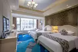 🛏【Room Types/Layout】: Offers Chinese/European styles, king beds/standard rooms, and even romantic round beds; rooms have large windows with city views