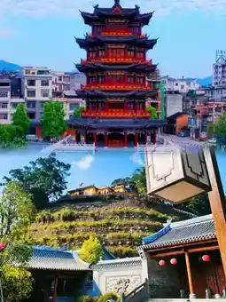 4️⃣Hegang Tower🏬Built along the river, you can overlook the beautiful scenery of Hedong and Yuanjiang in Wuzhou from the tower.🌉