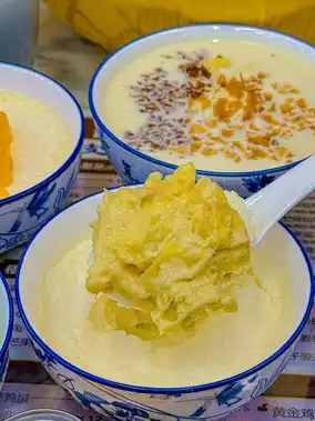 Vocal, Xi'an really has this, it's really a gospel for durian heads, 💛 First, let's talk about their durian double skin milk 🥛, that taste, it's simply amazing 👏. The double skin milk is super tender and smooth, it melts in your mouth, and the strong milk flavor spreads in your mouth. There is a thick layer of durian pulp on top, the quality of the durian is really good 👍, the taste is rich, sweet and delicious. One bite, both the delicacy of the double skin milk and the mellow of the durian, the sense of happiness instantly bursts 😍.