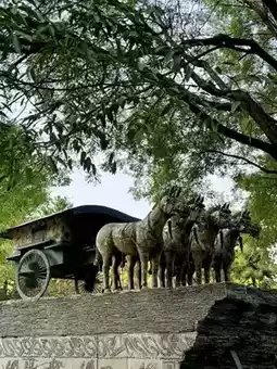🌈 The architectural style of the park is unique, simple, and solemn. The black color scheme gives a sense of the majesty and mystery of the Qin Dynasty. Here, you can see the statue of the Second Qin Emperor, Hu Hai, whose eyes seem to reveal the helplessness and confusion of the past.