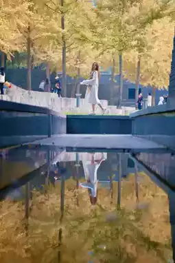You can take a picture of yourself and the reflection of the ginkgo tree in the water as shown in the picture