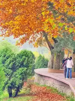 2. There is a guardrail behind the Taiyi Zhenren statue, and there is a mountain ⛰️ with rich red leaves behind it, which is very ornamental.