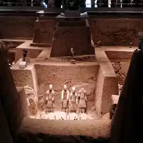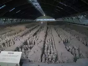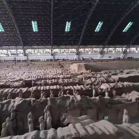 The Mausoleum of Emperor Qin Shihuang is very grand and magnificent. You can buy tickets at the front. The tomb is divided into 3 pits. The excavation began in 1974 until now. More than 6,000 Terracotta Warriors and more than 40 chariots were discovered. Each Terracotta Warrior has a different appearance. Currently, the government has slowed down the excavation because the colors of the excavated terracotta warriors cannot be preserved. The newly discovered terracotta warriors are colorful, but when exposed to air, the color gradually disappears until it becomes what we see in the picture.