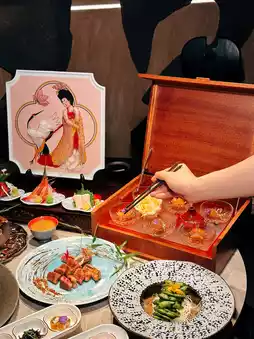 Xiao Teahouse on the 5th floor of MixC brings the word "resplendent" to life. With a 15-meter high ceiling, 60,000 gold foils on the ceiling, and the same gold bricks as the Forbidden City on the floor, you can sit by the huge floor-to-ceiling windows and see the tree of life right in front of you. It's truly a dazzling sight.