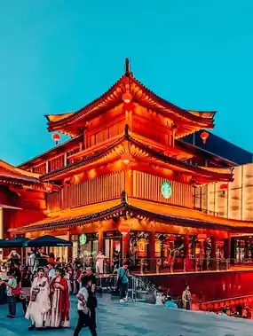 In the evening, we visited the Grand Tang Mall. The Chinese clothing performances in Xi'an are dazzling, and the lights are brilliant and beautiful.