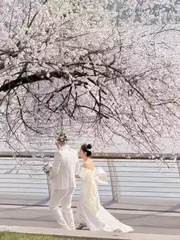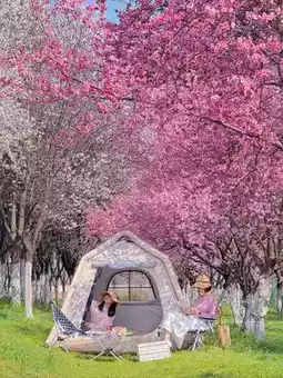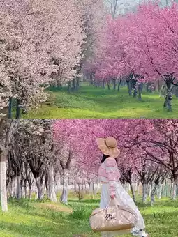 It is located at the location of the ginkgo forest, there is a cherry blossom forest, the branches of the flowers are scattered, and many branches grow downwards. No ladder is needed, and you can take pictures with the feeling of full screen flowers.